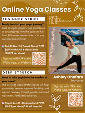 Build your practice step by step in this 8-class beginner series. Starting with floor-based movements that strengthen your core, improve mobility, and introduce short Downward Dog holds, you’ll gradually progress into standing poses and flow sequences. By the end of the series, you’ll feel confident moving through a full vinyasa practice with strength, stability, and ease. Tuesdays & Thursdays, Oct. 21 – Nov. 13 at 7 PM $18.75 per class ($150 upfront for the full series) It's okay if you miss class, you can always watch the recordings!