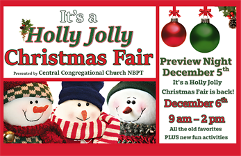 ? Free hot chocolate or coffee at the entry ? Annual Basket Raffle ? Gorgeous Jewelry & Accessories Room ? Decorated Wreaths Auction ? Our “World Famous” Cookie Walk ? “Kids-Only Activity Center” & Santa Photo booth ? Country Store: beautiful homemade items ? Sweet Shoppe and Baked Goods ? Fair Passports with an opportunity to win a Prize! ? Souper Luncheon - with Fish Chowder, Baked Beans and Sandwiches here or to-go. See you at the Fair!
