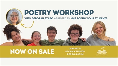 Whether you’re a published poet or you’ve never written a poem before, join beloved teacher and friend of the festival Deborah Szabo, together with her Newburyport High School Poetry Soup students, for a poetry workshop! Create poems in community and have some fun! All abilities welcome; open to ages 18+.