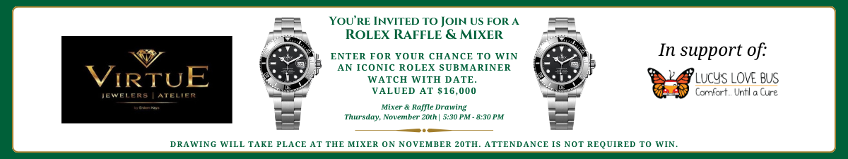 The 2025 Rolex Raffle & Mixer is officially underway! This is your chance to take home a stunning Rolex Submariner Date—valued at $16,000 and generously donated by Virtue Jewelers of Newburyport. Tickets are just $50, and 100% of proceeds support Lucy’s Love Bus, an Amesbury nonprofit that provides joy, comfort, and stability to children with cancer and their families.